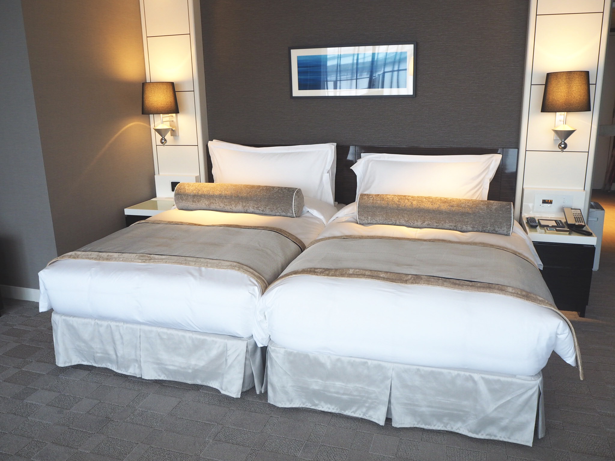 ホテルのエントランスはホワイト×ブルーの明るい雰囲気でしたが、お部屋は東京ベイコートにも少し似た落ち着いたトーンです。